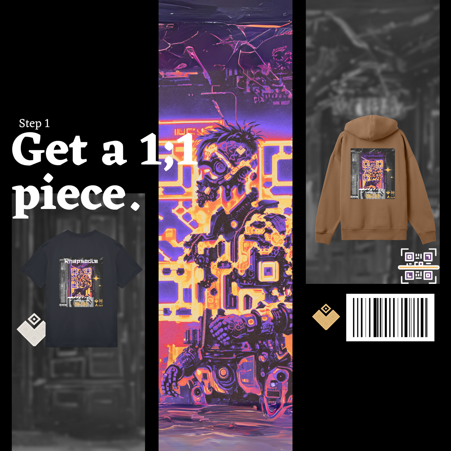 "We all express ourselves in unique ways. At Rhapsodie, our community celebrates individuality through style and music. As pioneers in fashion innovation, we are the first clothing brand to seamlessly integrate scannable art with music, enabling you to literally wear your melody. Join us in redefining fashion as a dynamic expression of sound and style."